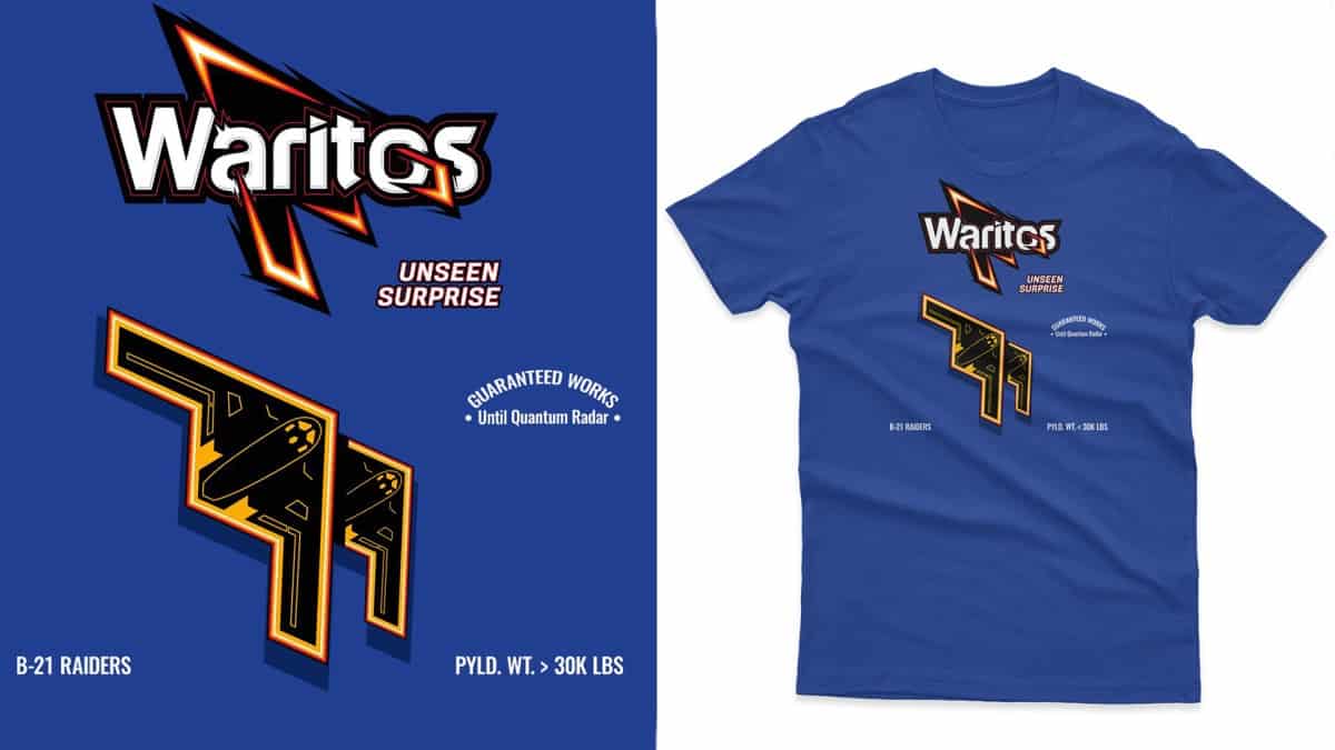The B-21 Raider and America's most popular heavily-seasoned tortilla chip collide to make this "Waritos" tribute t-shirt.