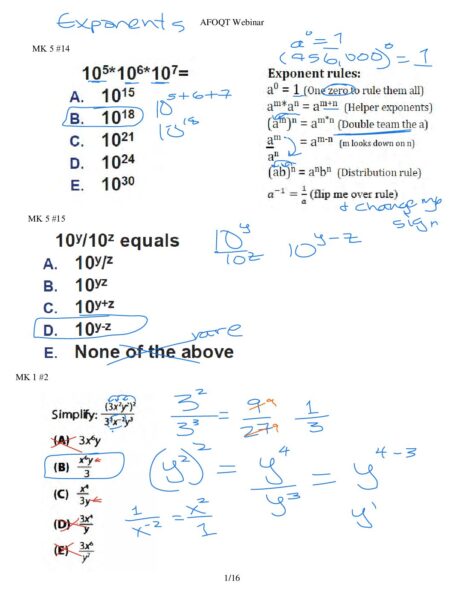 AFOQT Webinar – AFOQT Math techniques: Exponents, Radicals, and Percentages.